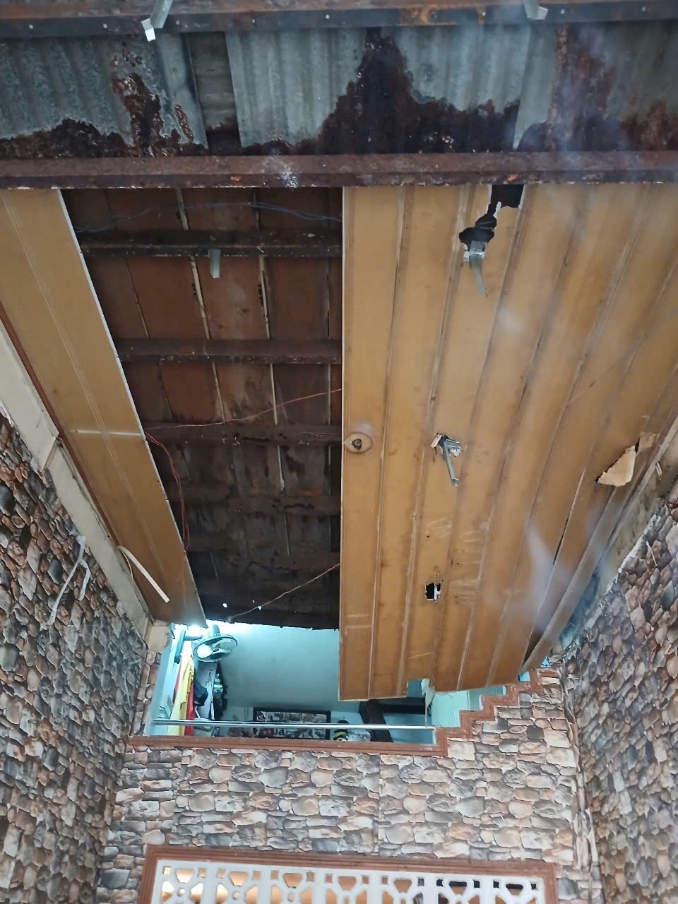 1.1 Thấm nước mái nhà hoặc tường thấm ngược: đây là nguyên nhân hàng đầu. Khi mái nhà hoặc tường bị thấm, nước sẽ ngấm dần qua lớp bê tông và lan xuống bề mặt trần thạch cao.