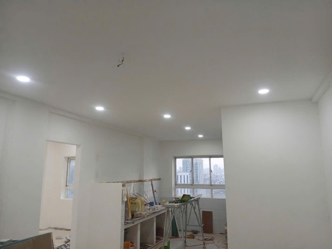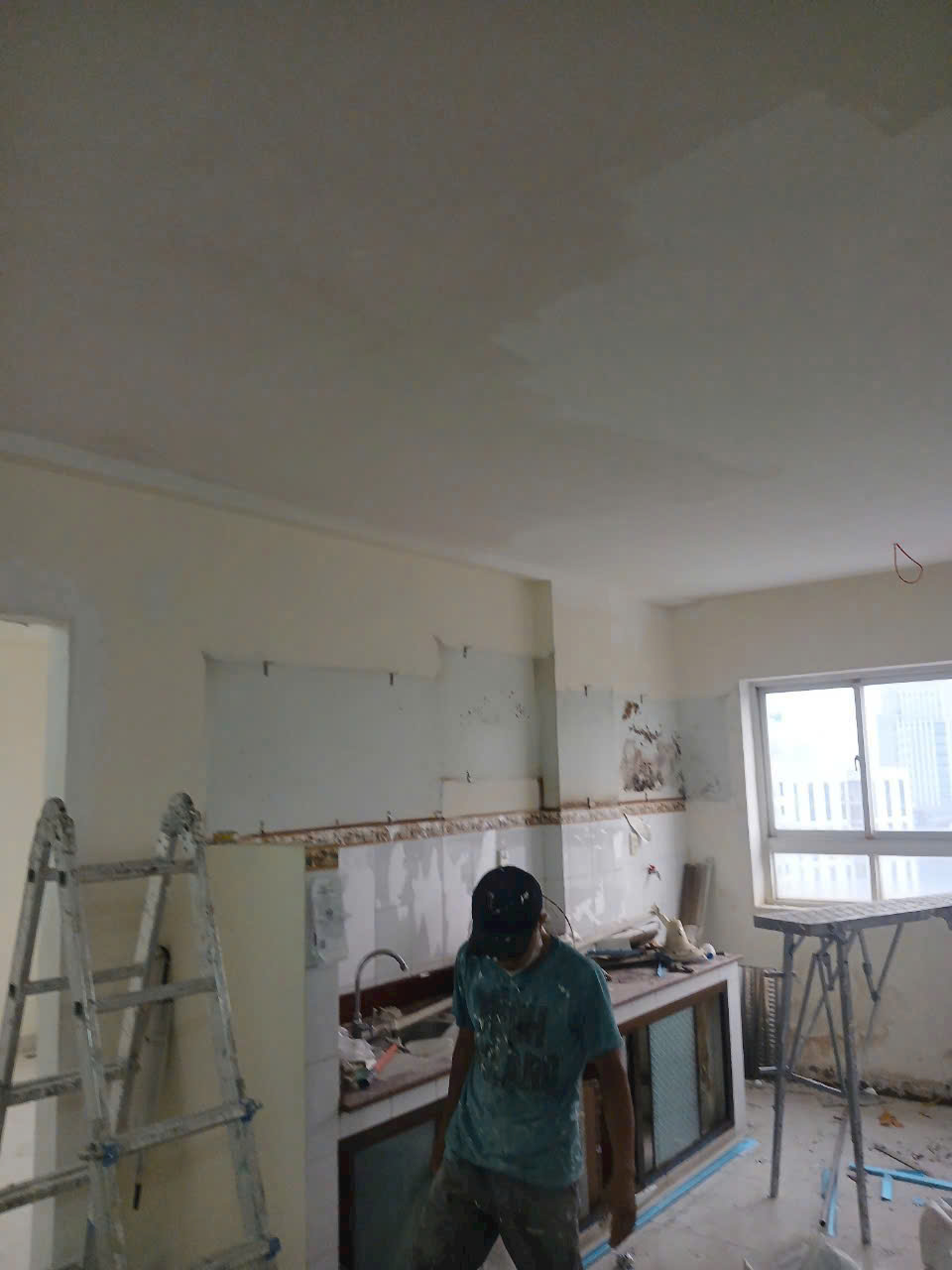 – Thợ sẽ cạo bỏ lớp sơn bong tróc, mài nhẵn bề mặt, trám kín các vết nứt nhỏ, xử lý chống thấm triệt để ở các khu vực dễ thấm như chân tường, góc tường hoặc khu vực gần nhà vệ sinh.