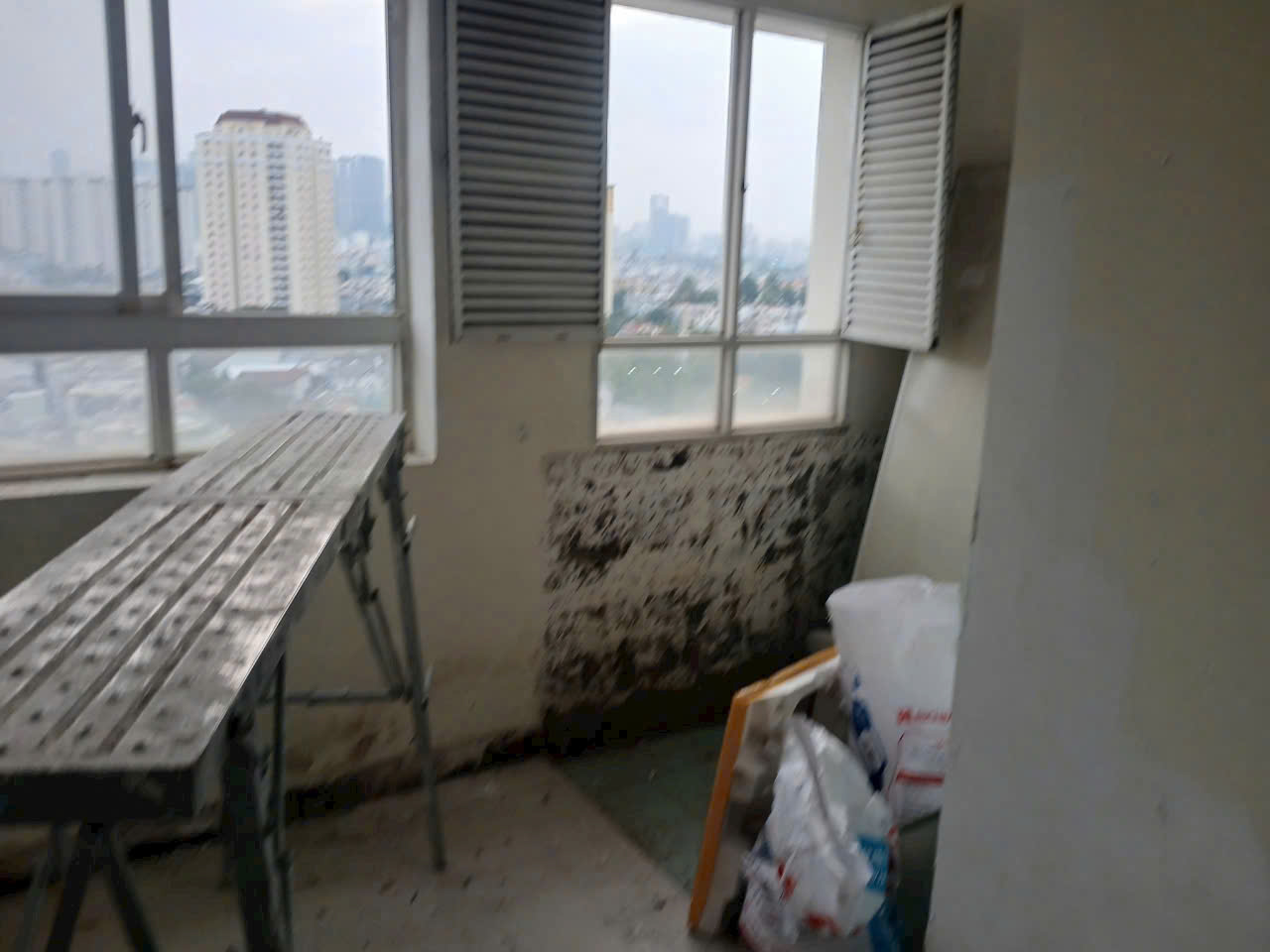 - Tường bị bong tróc, loang màu