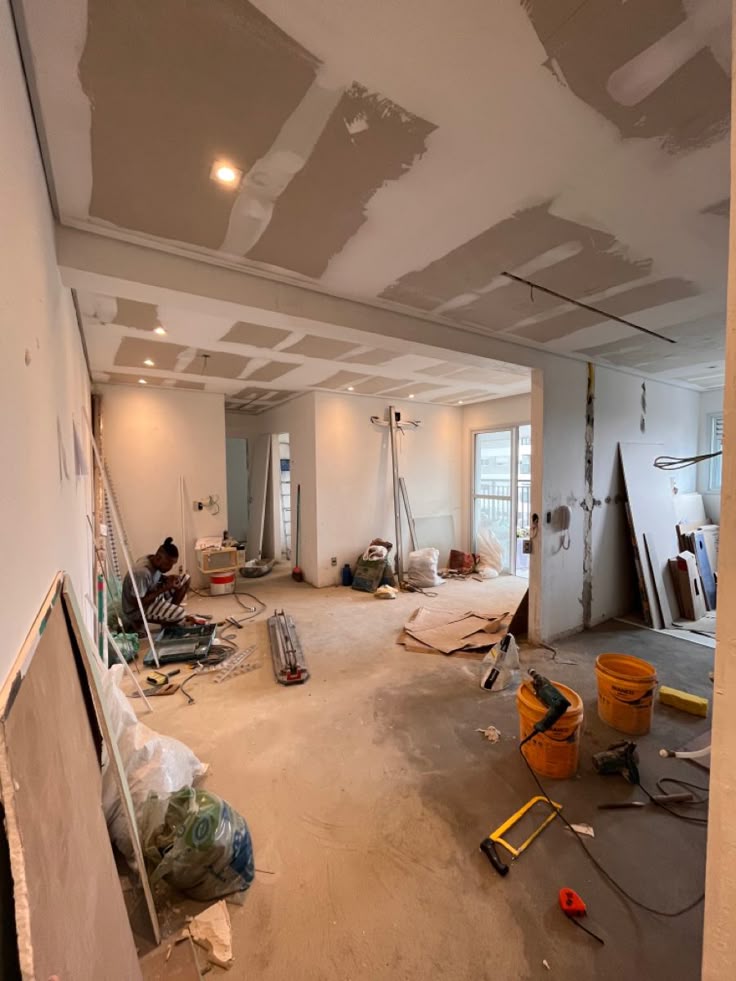 Sau khi bột bả khô, tiến hành sơn hoàn thiện bằng sơn chống ẩm, màu trắng sáng hoặc theo yêu cầu của khách hàng.