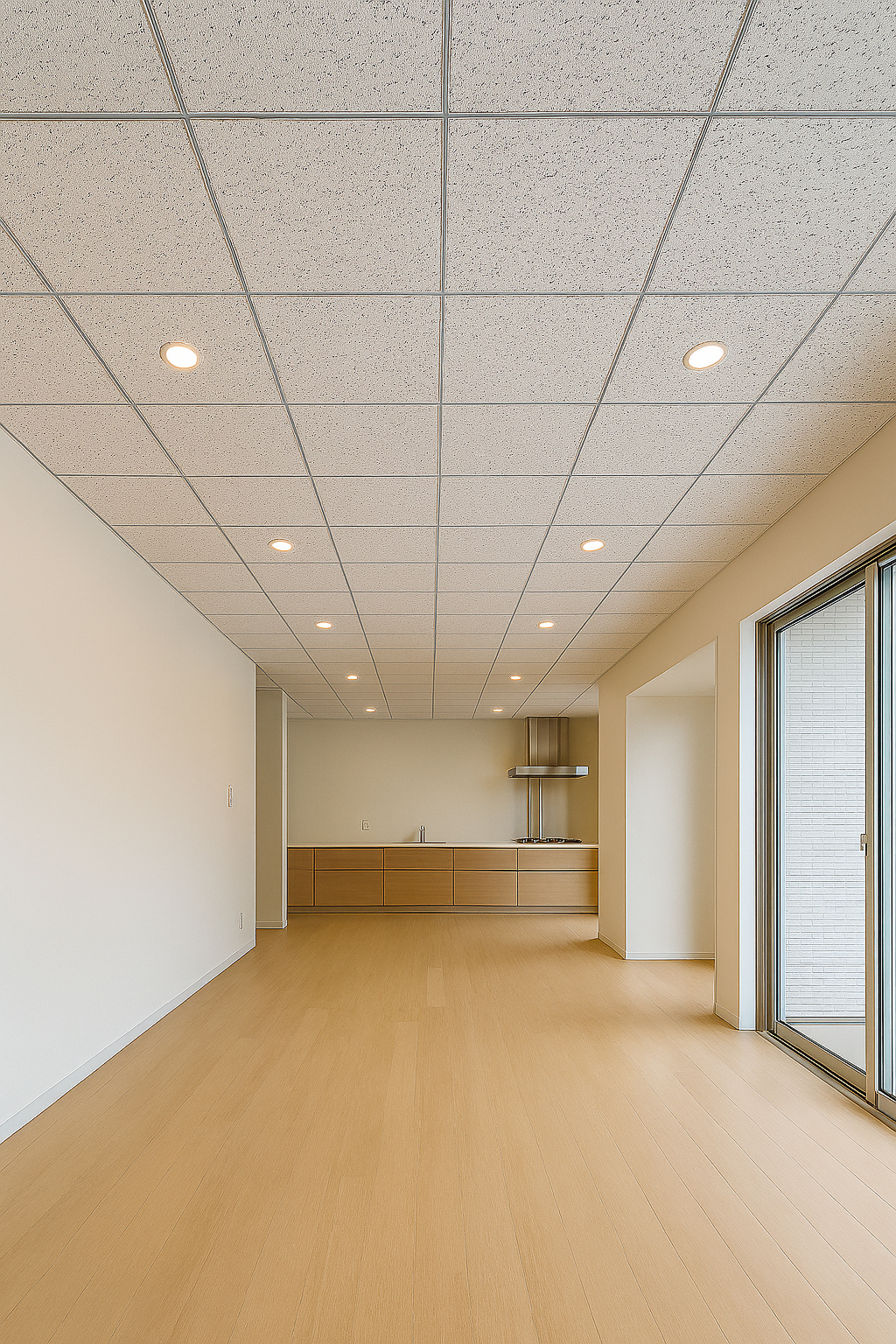 - Trần nổi (trần thả): Dành cho văn phòng, nhà xưởng, nhà hàng, showroom. Dễ tháo lắp, thuận tiện kiểm tra hệ thống điện – nước – điều hòa.