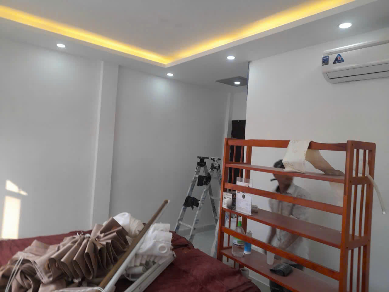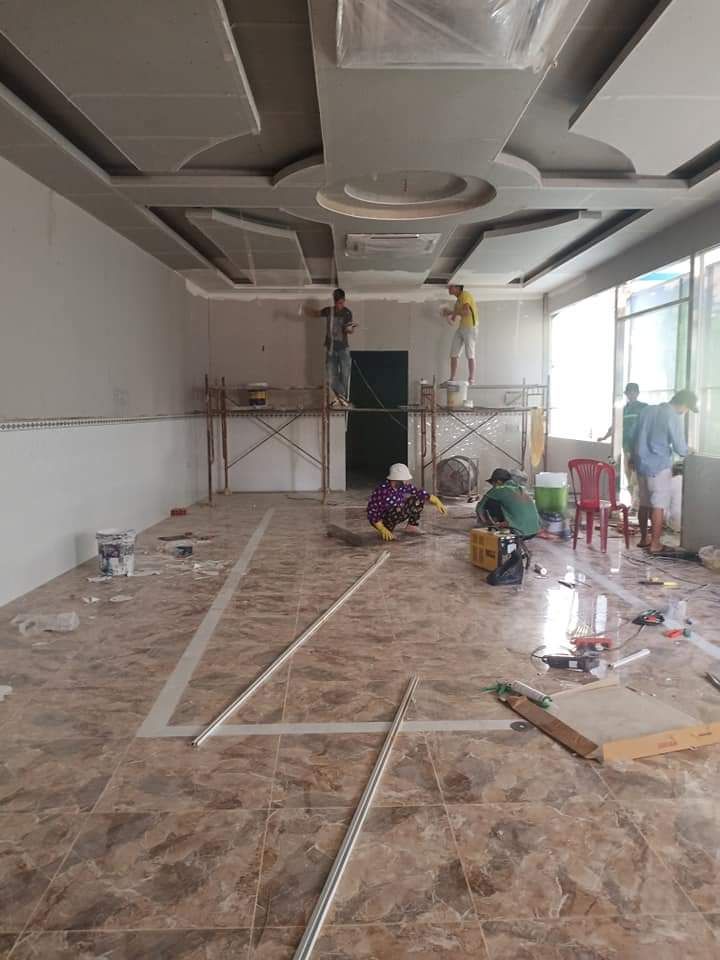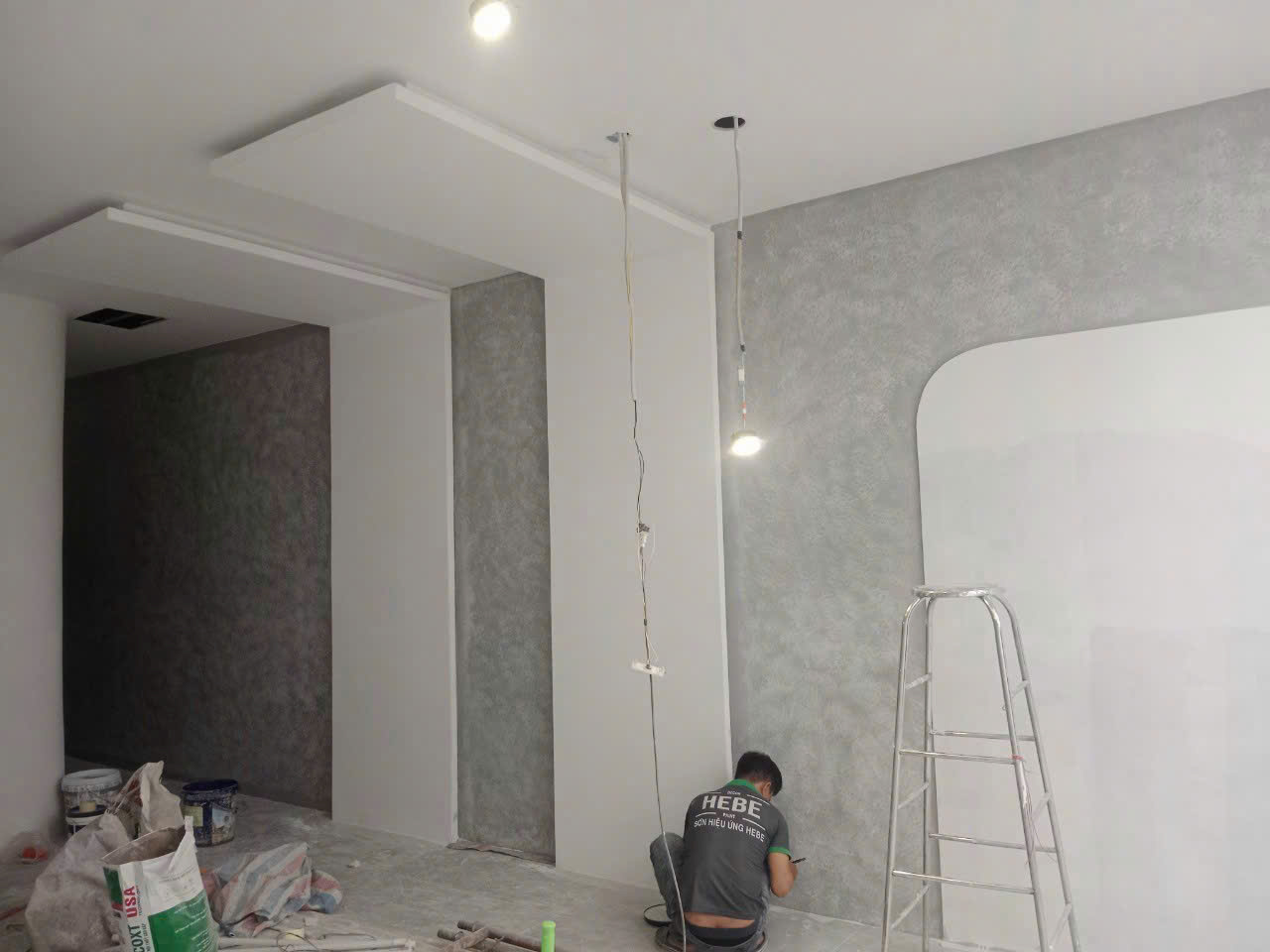 - Xử lý mối nối: Dán băng keo chống nứt, bả mối nối, làm phẳng bề mặt. Sơn hoàn thiện: Sơn màu, lắp đèn trang trí và kiểm tra độ hoàn thiện.