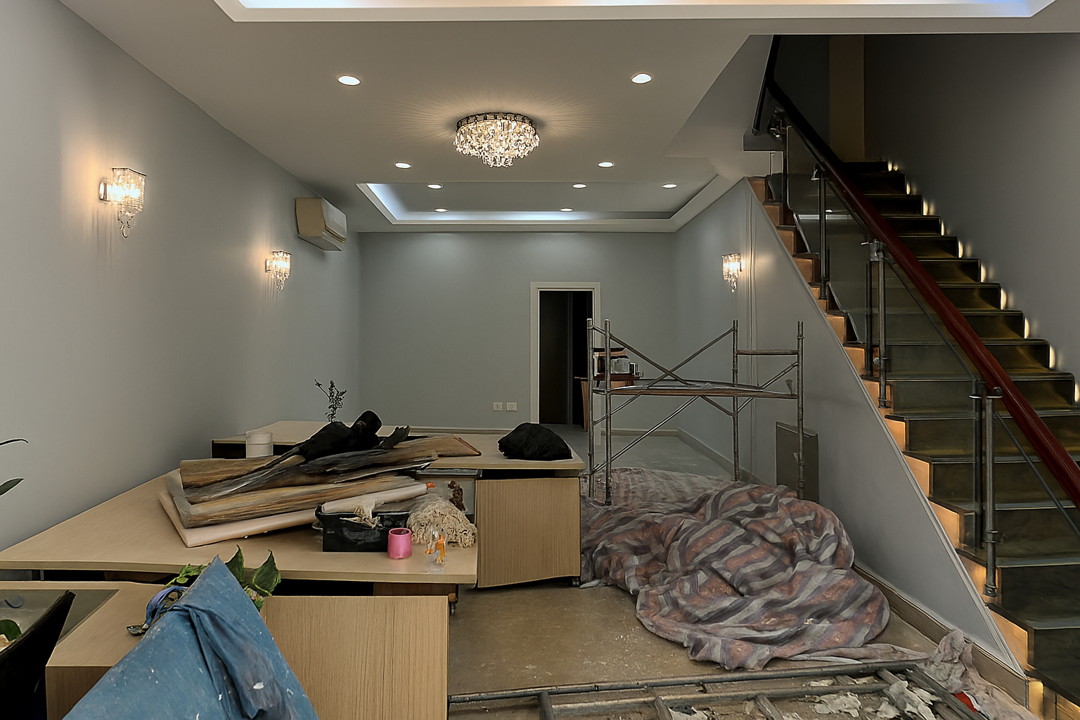 - Thi công sơn nước, sơn lót, bả matit, sơn bả trần vách thạch cao.
