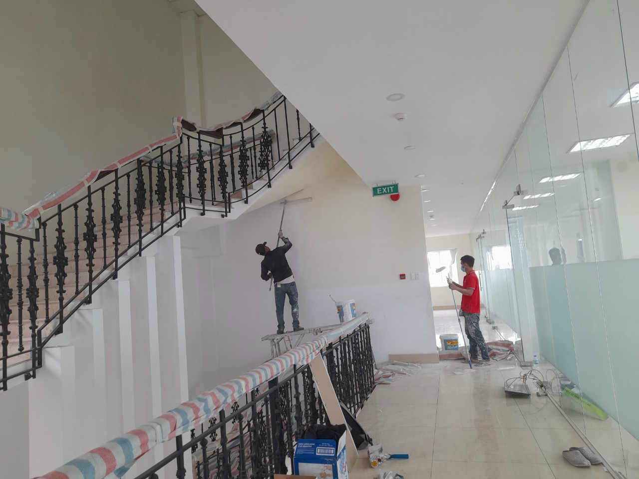 - Trang bị đầy đủ dụng cụ chuyên nghiệp như con lăn, máy phun sơn, giàn giáo, thang nhôm, đảm bảo thi công nhanh và đều màu.